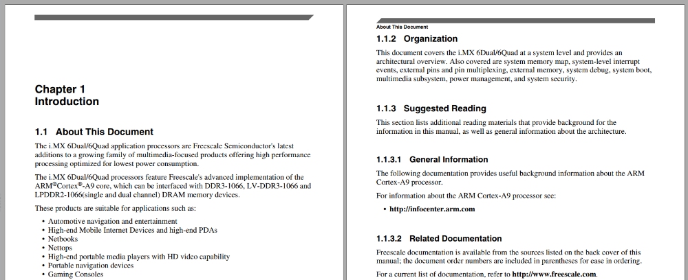 the reference manual for the i.MX6 used in the Novena. You'll note that "Chapter